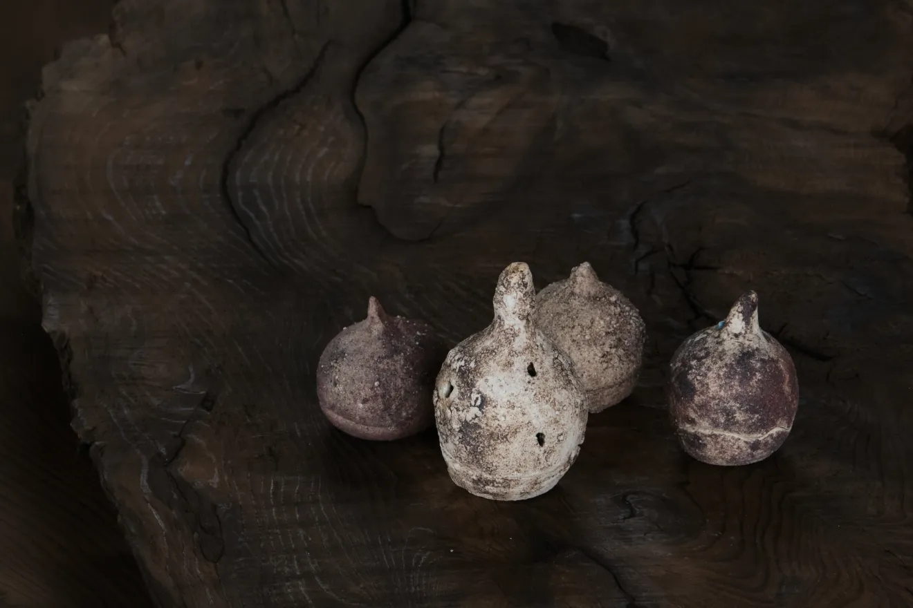 長女が幼い頃に良くしてくれた「イイお顔」から生まれました。 当時住んでいた飛騨は宮川村(現飛騨市宮川町)で、お散歩の途中にいつも一生懸命お地蔵様に「妹くだしゃい」と お祈りする長女・・・(実際にやって来たのは三男坊でした) そんな暮らしの中で「降ってきた」作品たちです。